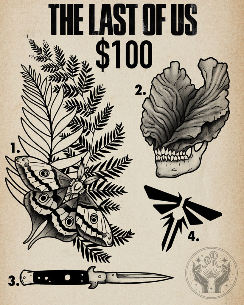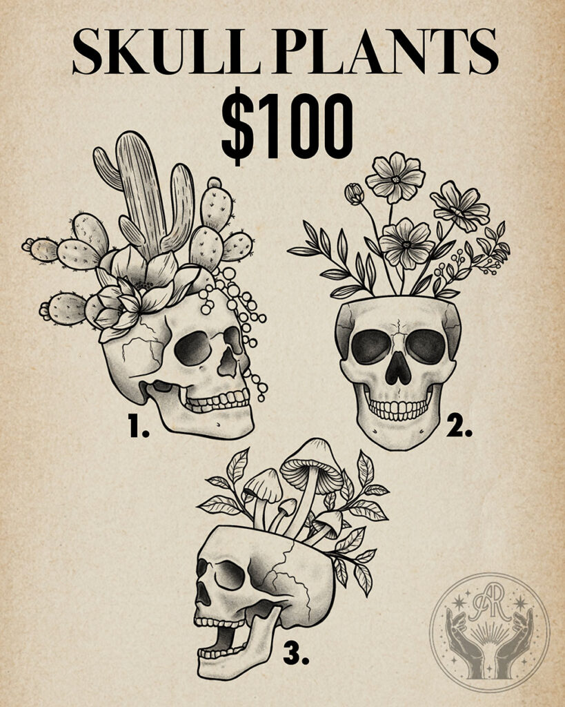 Choose Your Flash First, look through the flash gallery above. Then choose the flash sheet name and the design number you want. Flash sheet * Select a flash sheetAlien PlantheadsAlienBatsBeetlejuiceGhostsHarry PotterJurassic ParkLord of the RingsSkull PlantsStampsThe Last of UsV for Vendetta Design number * Select a design number1234567891011 Choose the number shown on that sheet. Not every sheet has every number. Design notes (optional) Optional, but helpful if you want to describe the exact design you picked. Add color for $20? * Select oneYesNo Color is optional and adds $20 to the final price. Placement + approximate size (inches) * Flash tattoos may need to stay close to the intended size and detail level shown on the sheet. Your Information Full name * Email * It’s required so I have a reliable way to confirm your appointment. Preferred method of contact Select oneEmailPhoneInstagram Phone number (optional) Only fill this out if phone is your preferred contact method. Instagram handle (optional) Only fill this out if Instagram is your preferred contact method. Flash Design Policy These designs are pre-drawn flash and repeatable. Minor adjustments may be possible, but major changes may require an additional cost. I understand and agree Scheduling What days work best? * Booking times: earliest 12pm, latest 4pm. MondayTuesdayWednesdaySaturdaySunday Anything else you want me to know? Pricing & Policies Flash designs are $60–$100. Add color for $20. Alterations are available at an additional cost. $50 deposit is required to book your appointment. The deposit goes toward the final cost. No-call / no-show: you forfeit your deposit and will not be able to book future appointments. You must be 18+. Guest policy: one guest allowed (must be 18+).